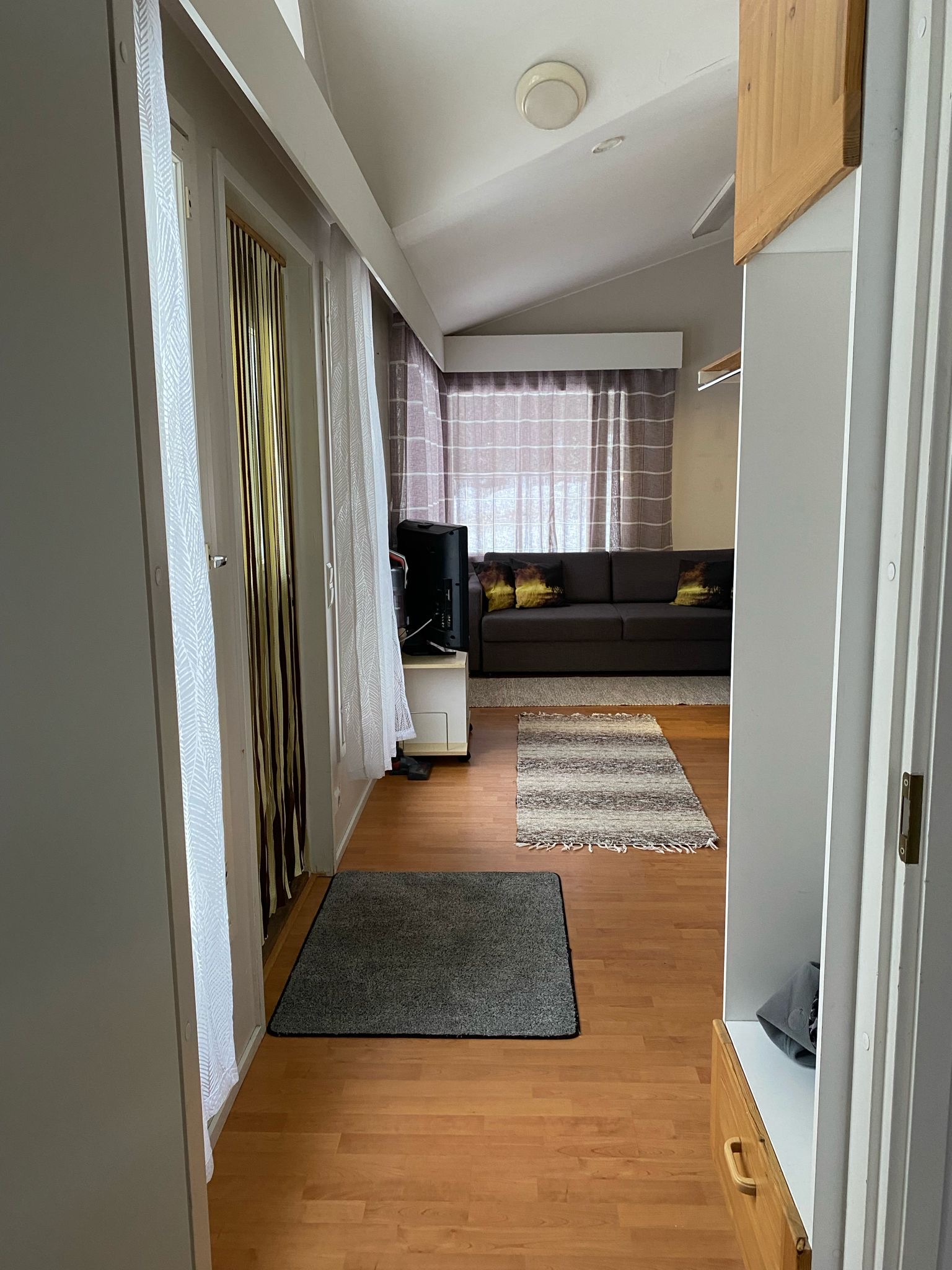 Taukotupa onkin mukavan avara ja valoisa pieneen lomanviettoon. Mökistä löytyy yksi makuuhuone, iso wc/suihkutila ja oleskelutila, jossa kokoonsa nähden hyvin varusteltu näppärä keittiö. Keittiön saarekepöydässä ruokailutila.
