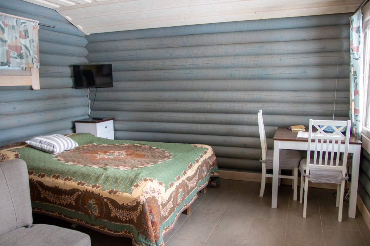 Kalliotuvasta löytyy kaikki tarpeellinen kahdelle henkilölle. Yhtenäisessä tilassa on keittonurkkaus, ruokapöytä, pari nojatuolia sekä sängyt kahdelle. Tässä tilaihmeessä on myös oma pieni wc, jonka yhteydessä suihku.