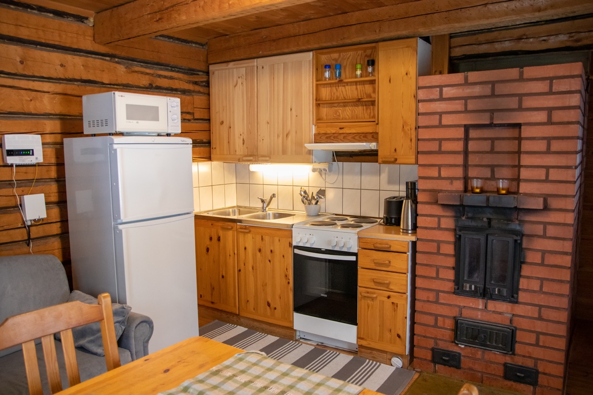- Keittiö: Jääkaappi erillisellä pienellä pakastimella, sähköliesi uunilla, kahvinkeitin, vedenkeitin, leivänpaahdin, mikro