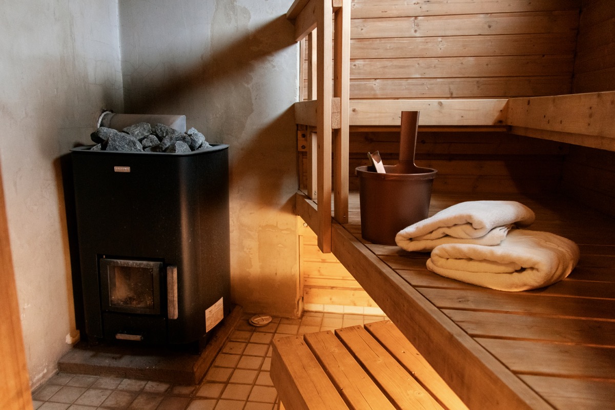 - puulämmitteinen kiuas, suihku pyykinpesukone